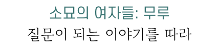 소묘 마지막으로 '소묘의 여자들' 공식 질문입니다. 저희 책에는 '오해'라는 단어를 애틋하게 여기신다고 쓰셨는데, 무루 님이 요즘 골몰하는, 아끼는 단어는 무엇인가요?